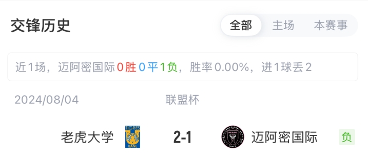 8月21日讯 联盟杯1/4决赛,迈阿密国际迎战老虎大学比赛即将打响。赛前首发出炉,本场梅西缺阵。